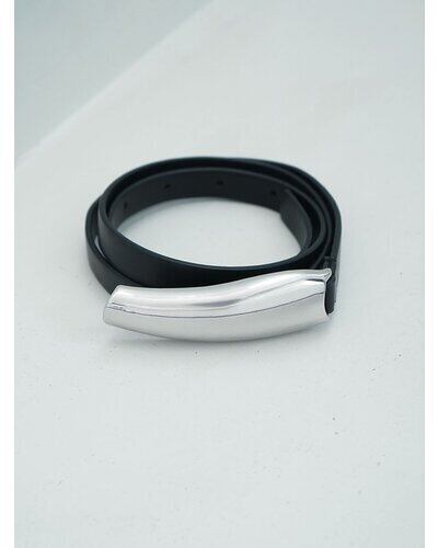 ニュアンスのある丸みを帯びたバー状のメタルプレートをフロントに配し、ベーシックな着こなしをモダンにアップデート。