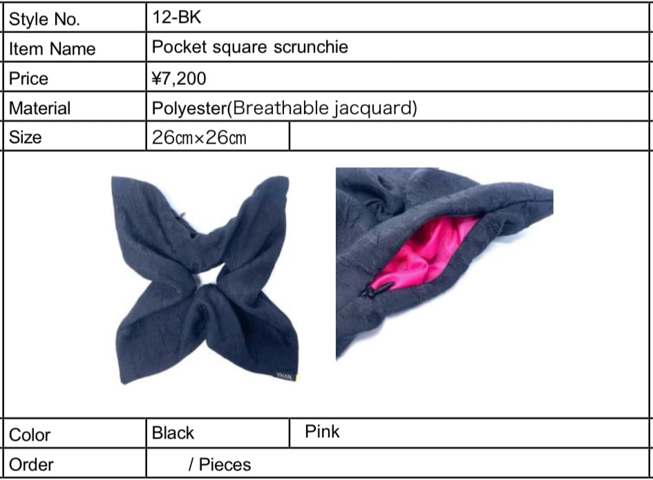 予約販売【 YHAN 】Pocket square scrunchie (12-BK) 12月お届け