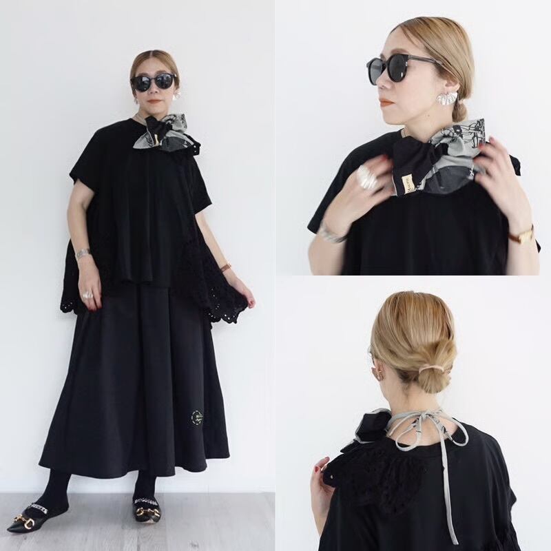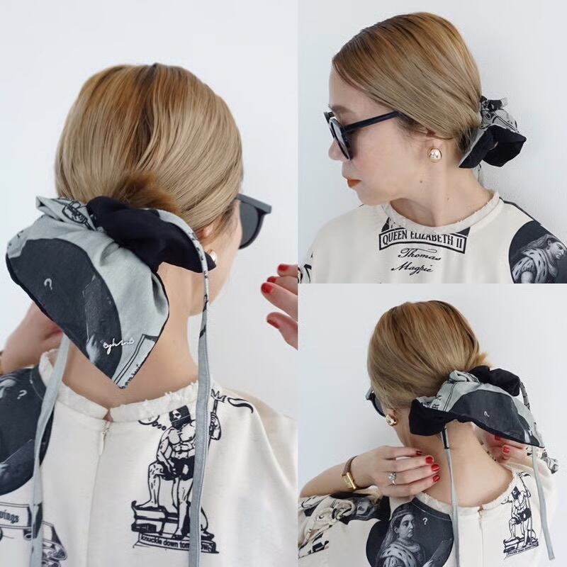 予約販売【 THOMAS MAGPIE× YHAN 】T-magpie British print square scrunchie (25-GR) 2月お届け