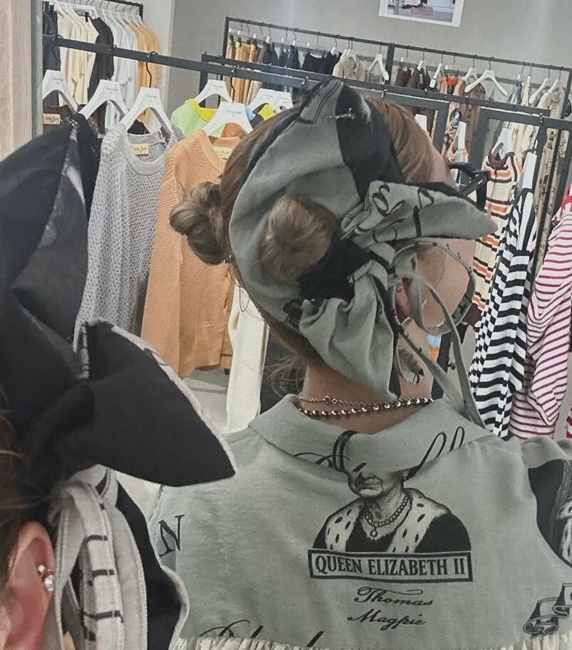 T-magpie British print square scrunchie