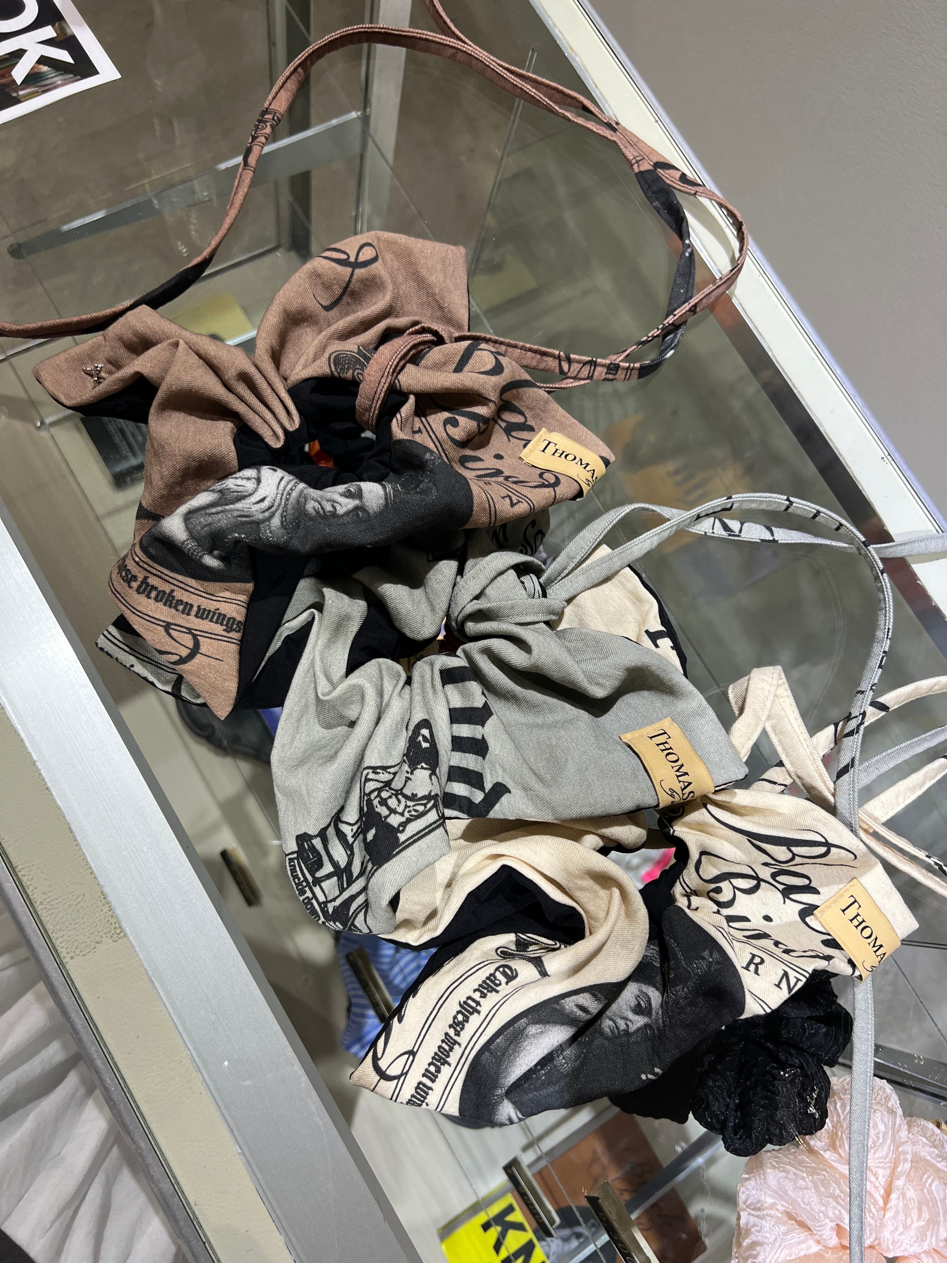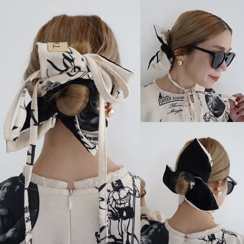 予約販売【 THOMAS MAGPIE× YHAN 】T-magpie British print square scrunchie (25-OFWH) 2月お届け