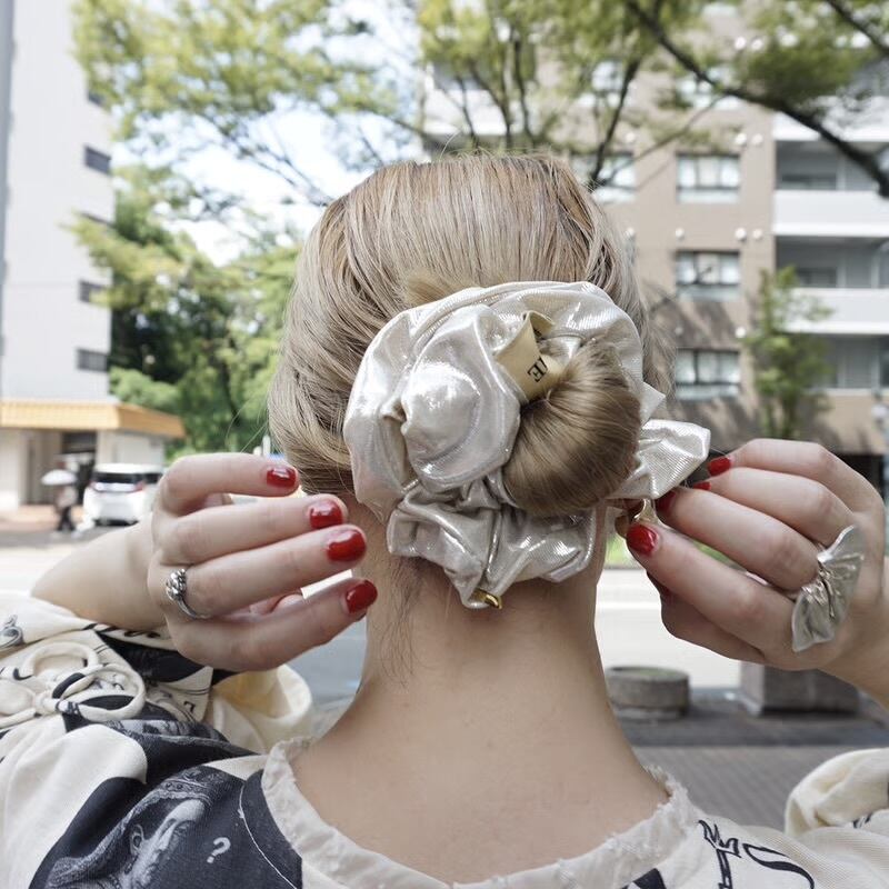 shiny metallic skirt シルバーの素材で作られているシュシュになります。