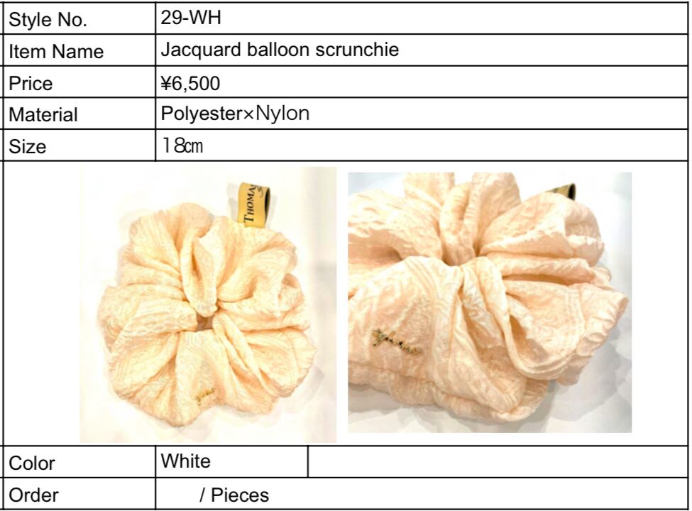 予約販売【 THOMAS MAGPIE× YHAN 】Jacquard balloon scrunchie (29-WH) 2月お届け