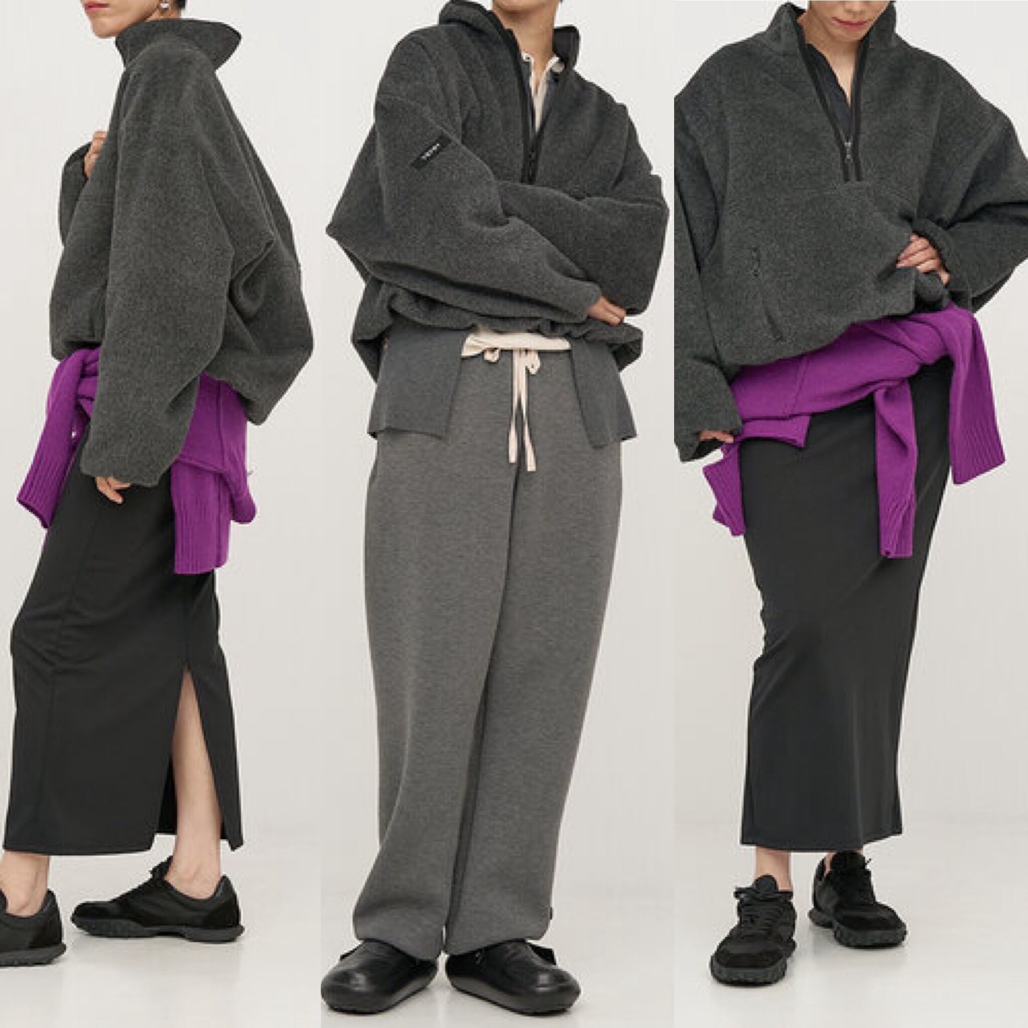 アウトドア製品にあるようなハーフジップのアウターをタウン仕様に落とし込みました。定番のファーやボアではなく