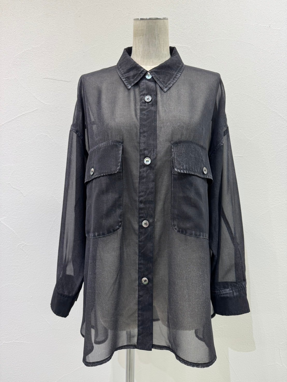 予約販売【 CYAN TOKYO 】デニム転写シフォンシャツ (610425) 2月中旬頃入荷