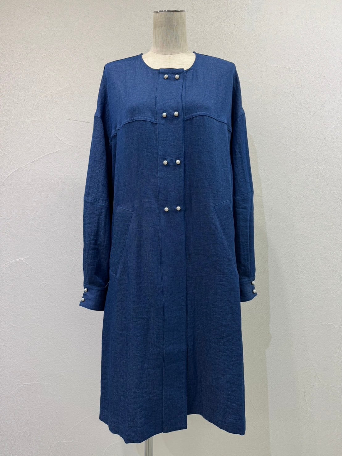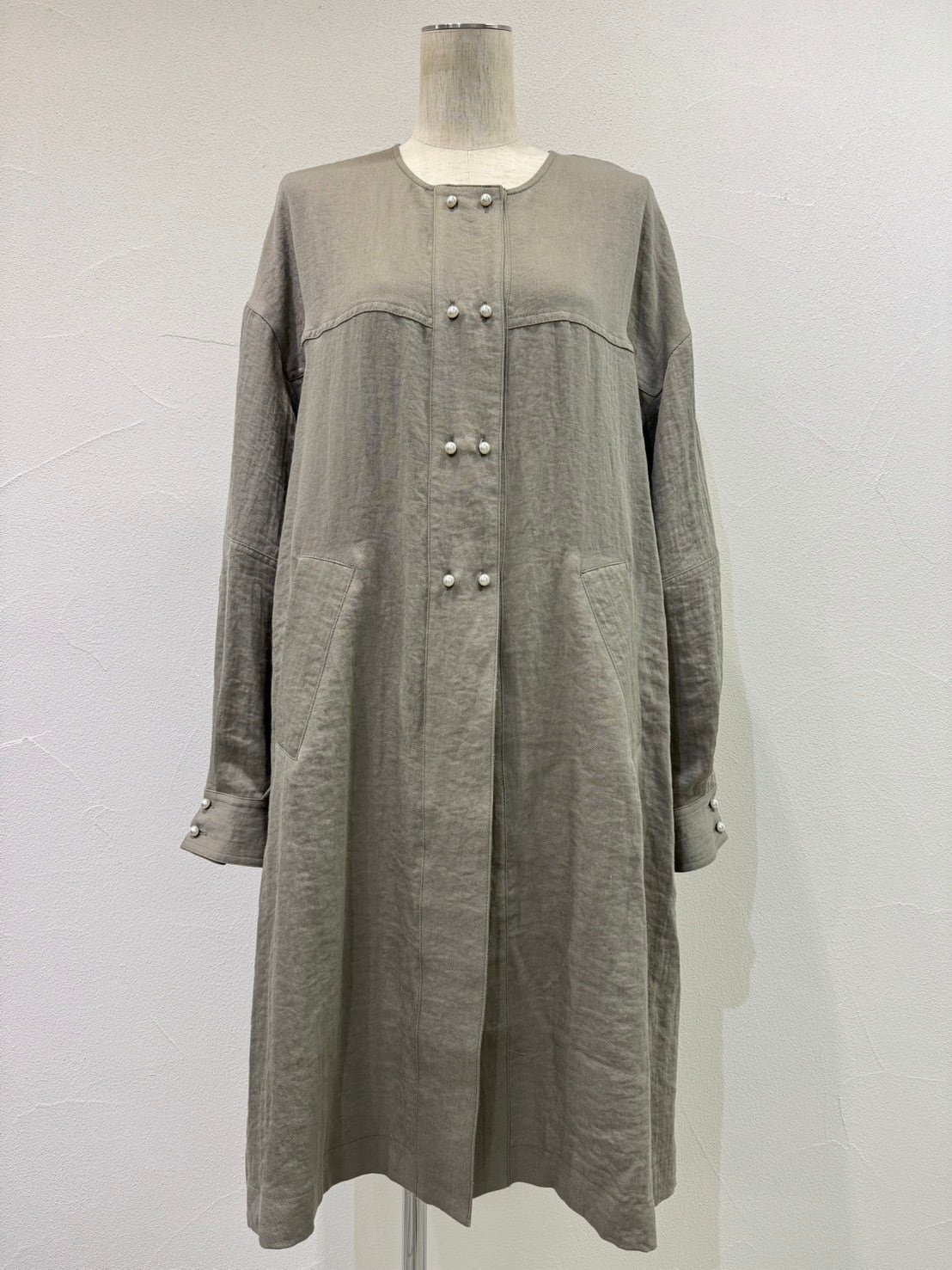 予約販売【 CYAN TOKYO 】パールボタンミリタリーリネンコート (610428) 2月中旬頃入荷