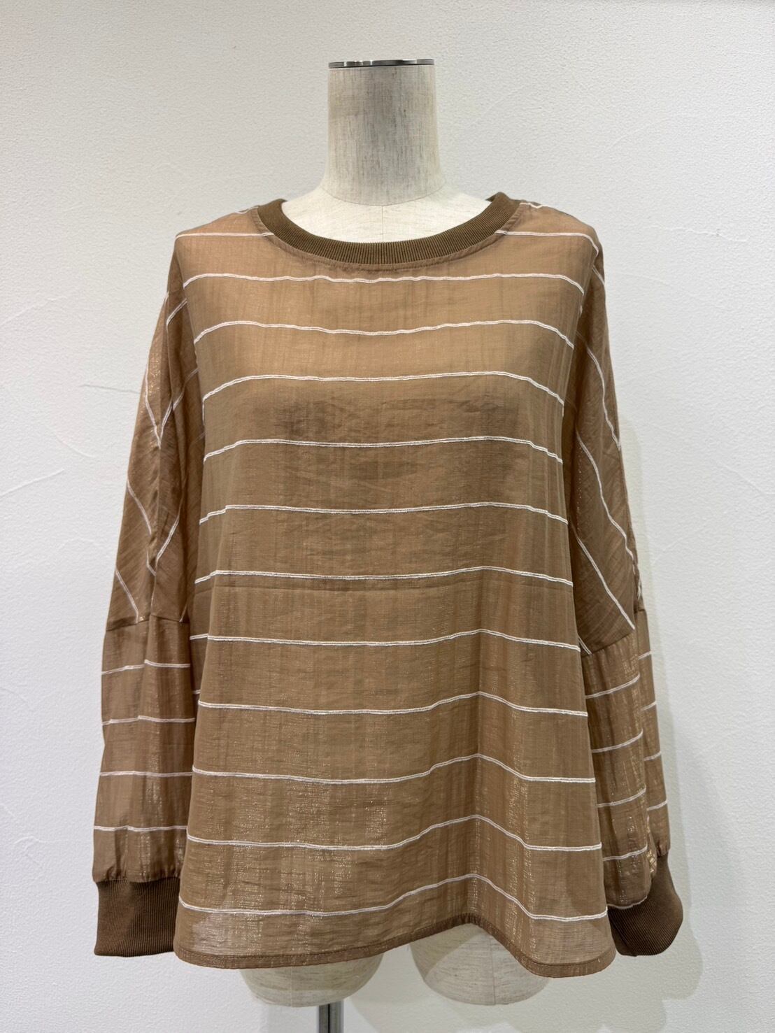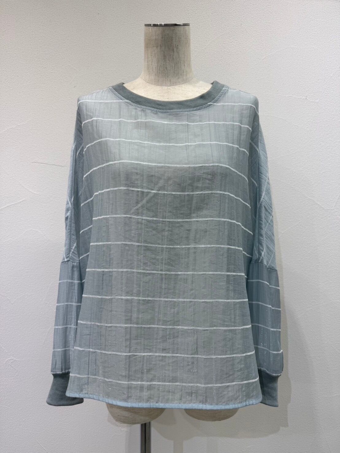 予約販売【 CYAN TOKYO 】グロッシーシアーボーダーブラウス (610432) 2月中旬頃入荷