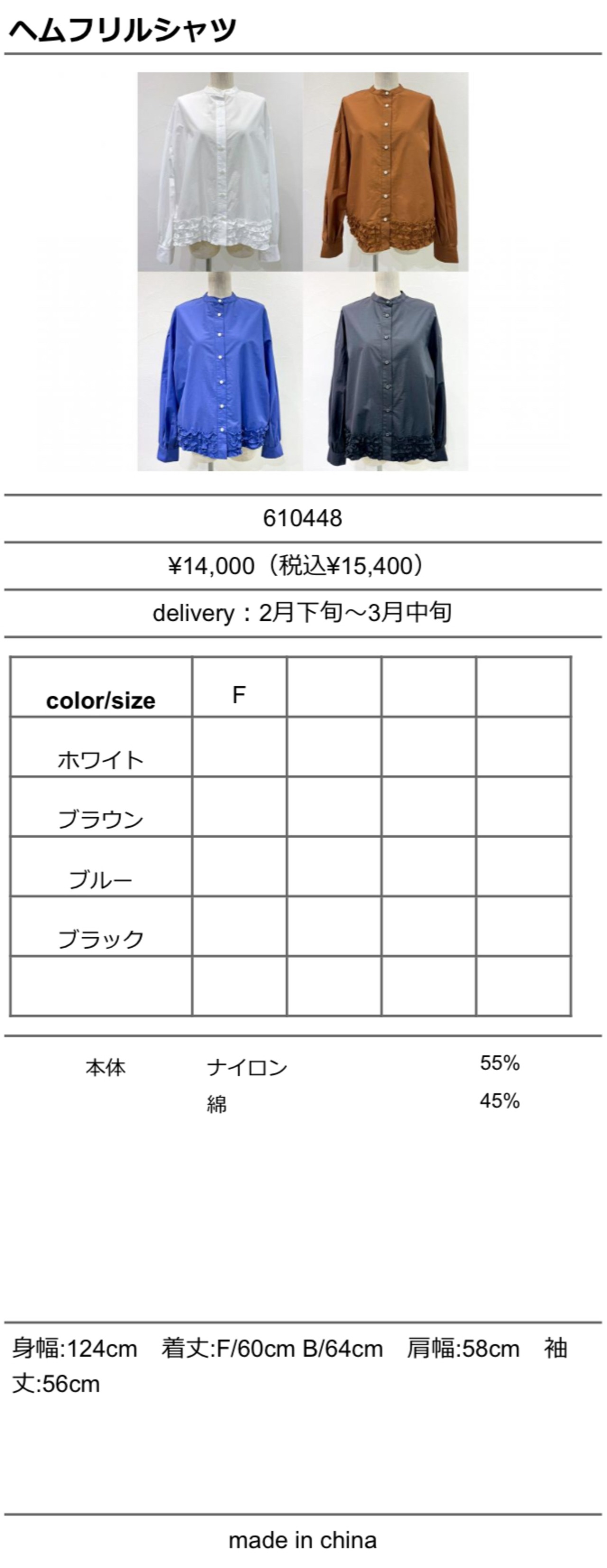 予約販売【 CYAN TOKYO 】ヘムフリルシャツ (610448) 3月中旬頃入荷