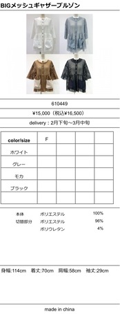 予約販売【 CYAN TOKYO 】BIGメッシュギャザーブルゾン (610449) 3月中旬頃入荷