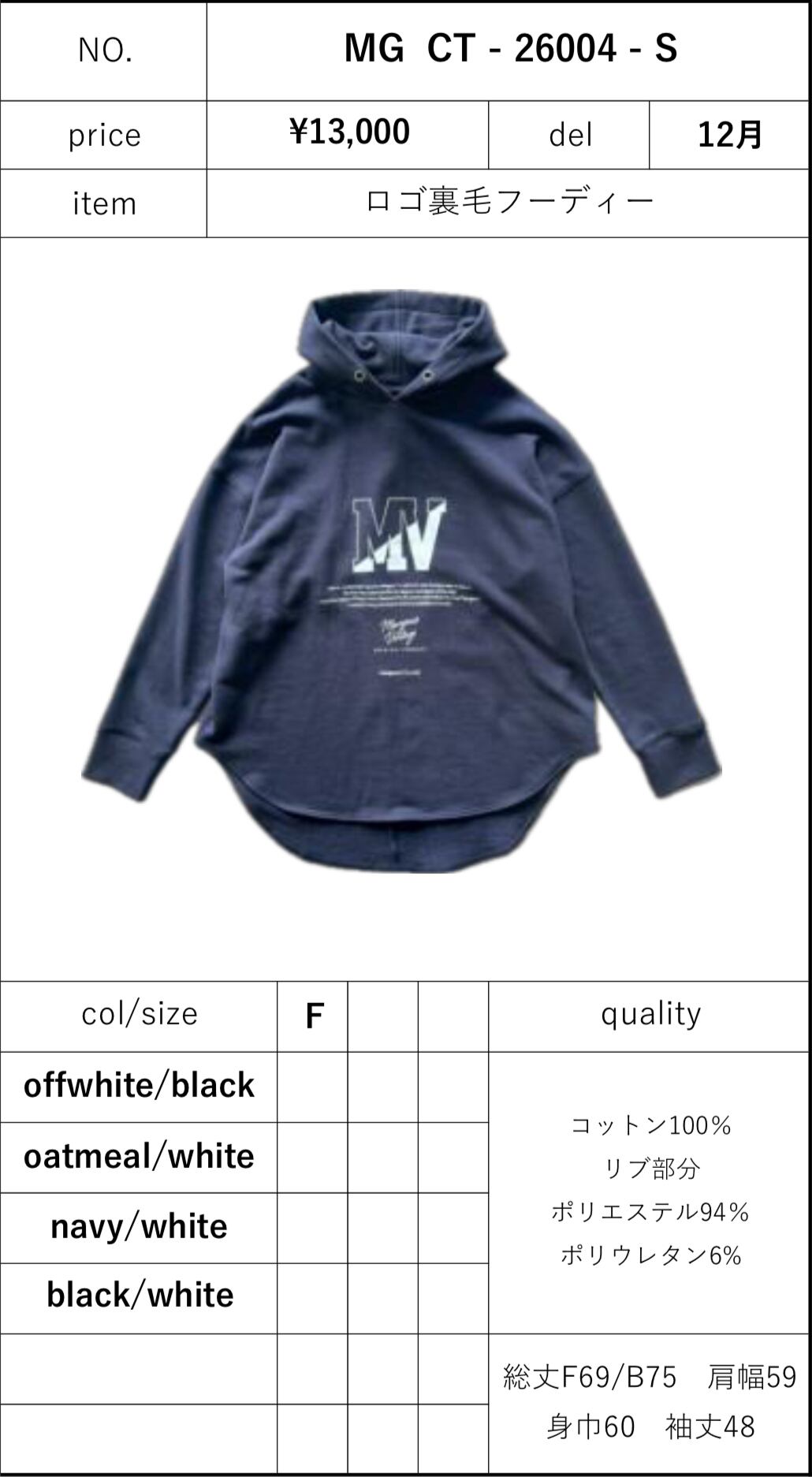 予約販売【 MARGAUX 】ロゴ裏毛フーディー (CT - 26004) 12月頃入荷