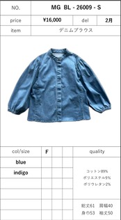 予約販売【 MARGAUX 】デニムブラウス (BL - 26009) 2月頃入荷