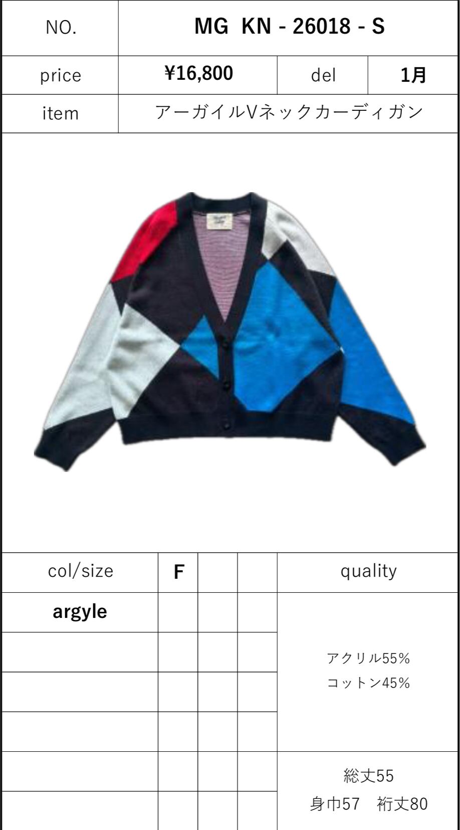 予約販売【 MARGAUX 】アーガイルVネックカーディガン (KN - 26018) 1月頃入荷