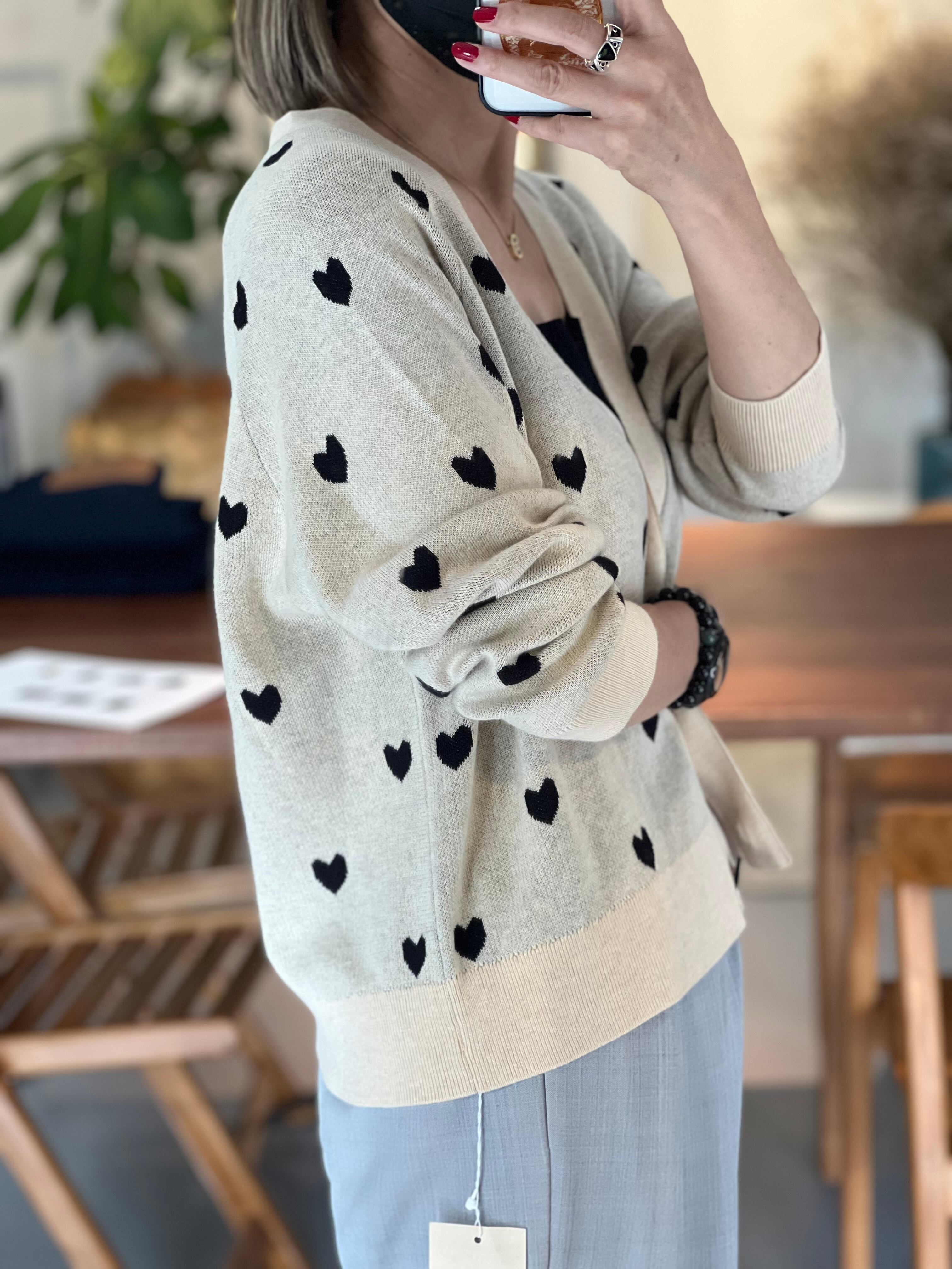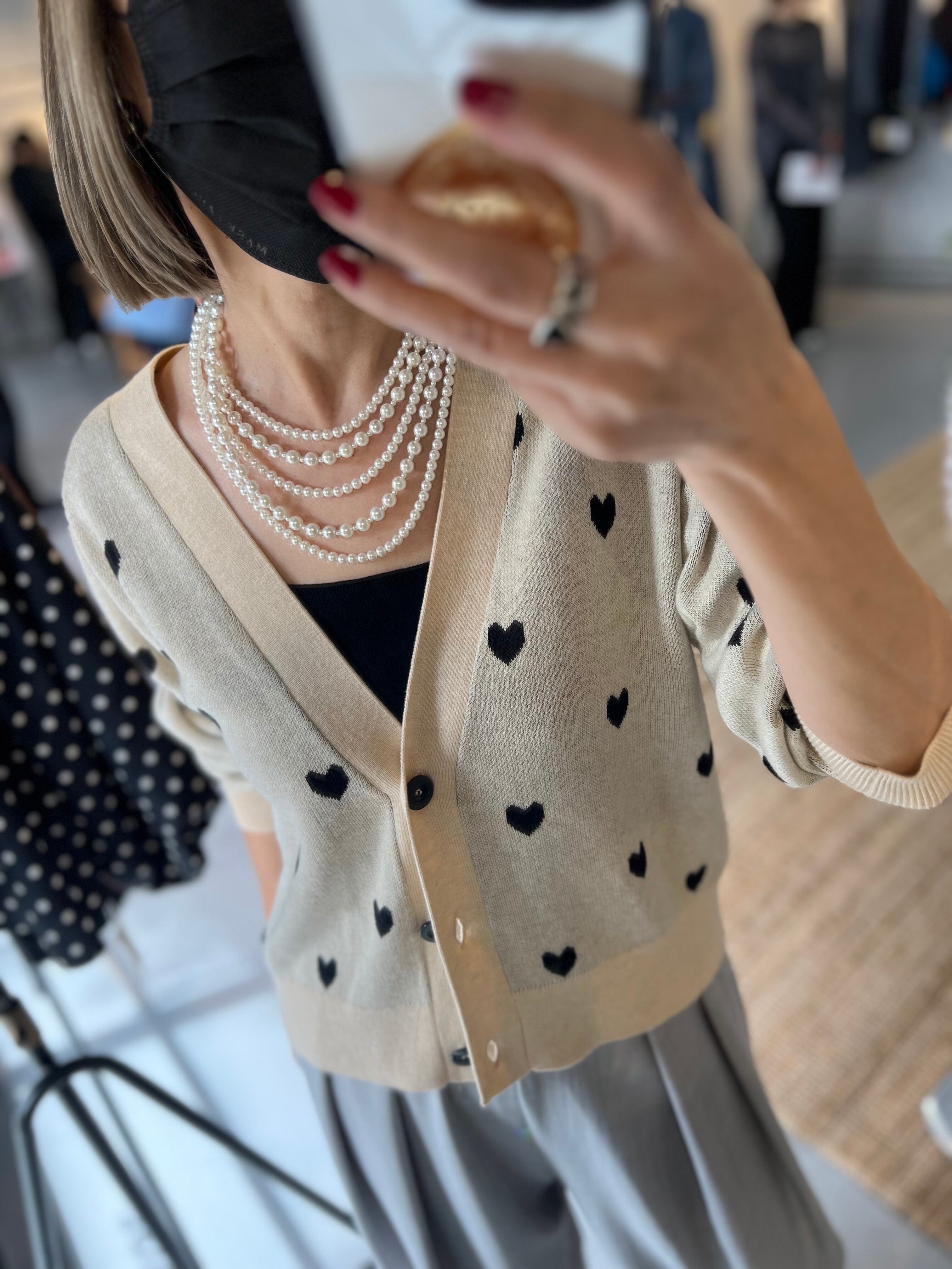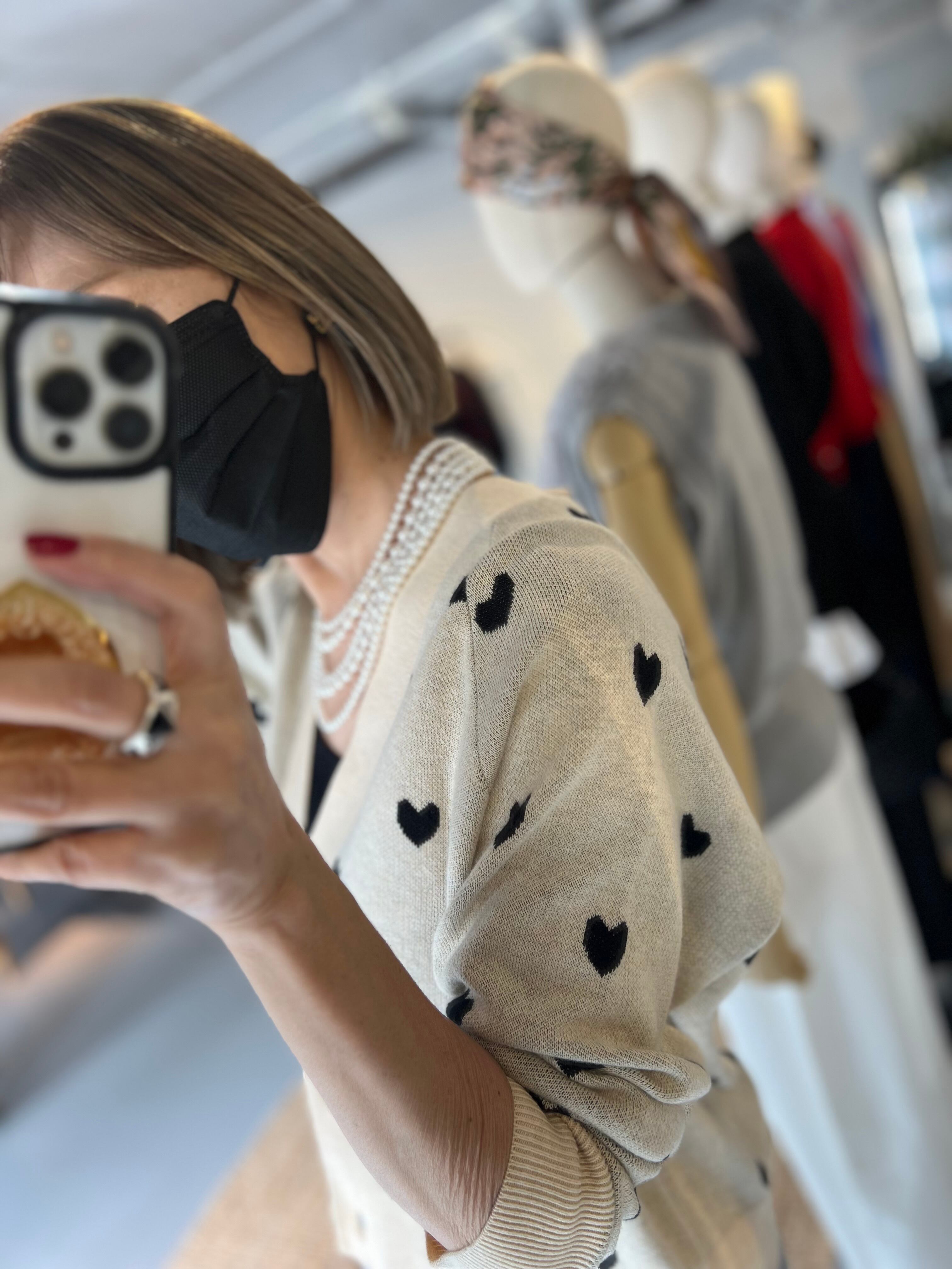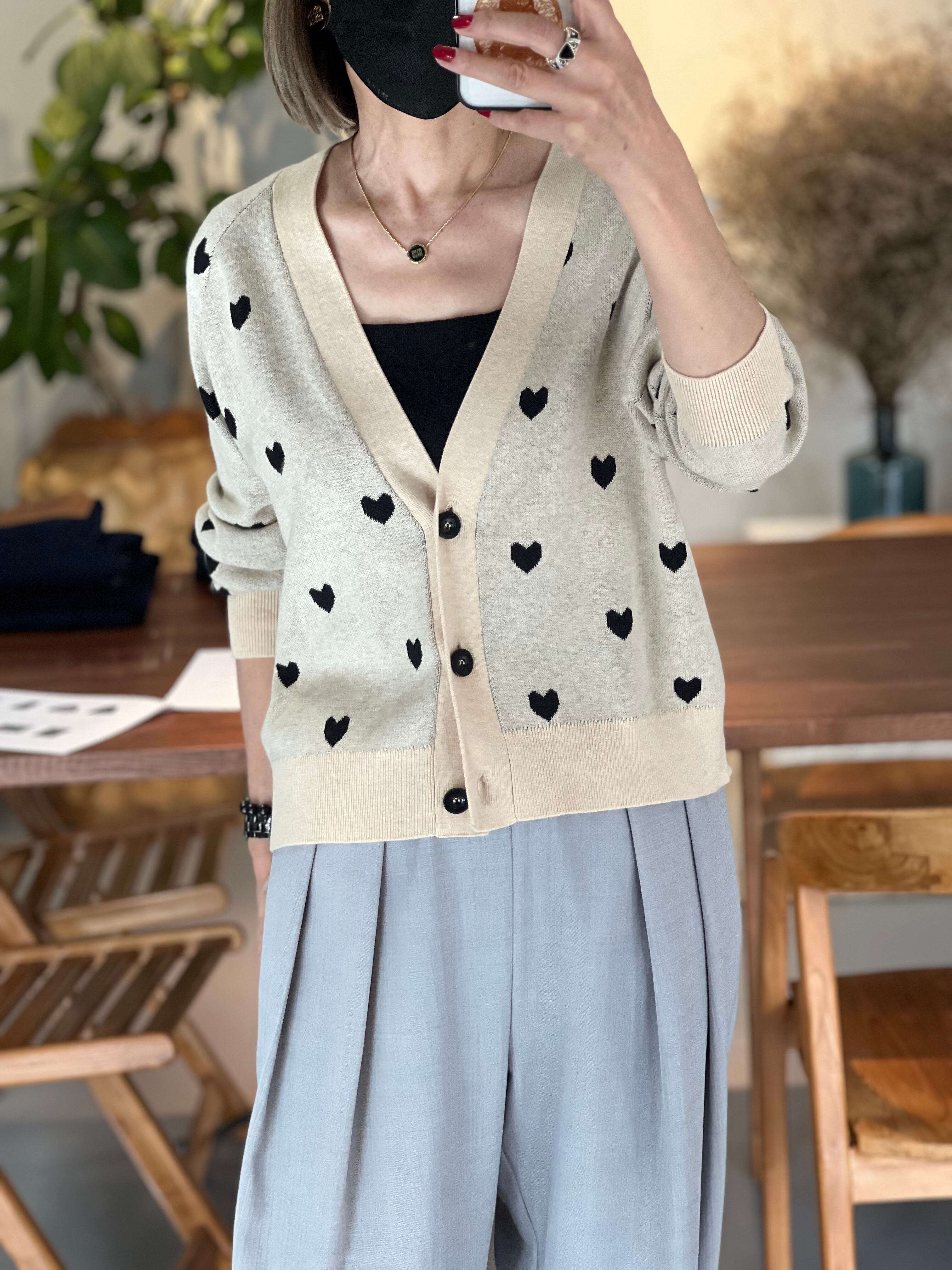 予約販売【 MARGAUX 】ハート柄Vネックカーディガン (KN - 26019) 1月頃入荷