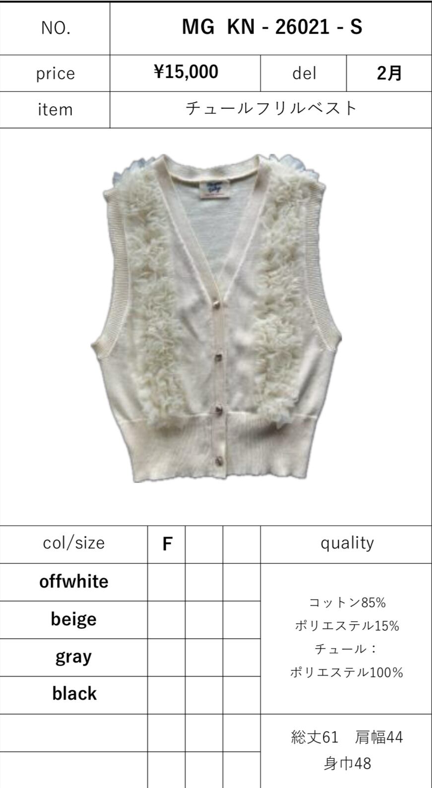 予約販売【 MARGAUX 】チュールフリルベスト (KN - 26021) 2月頃入荷