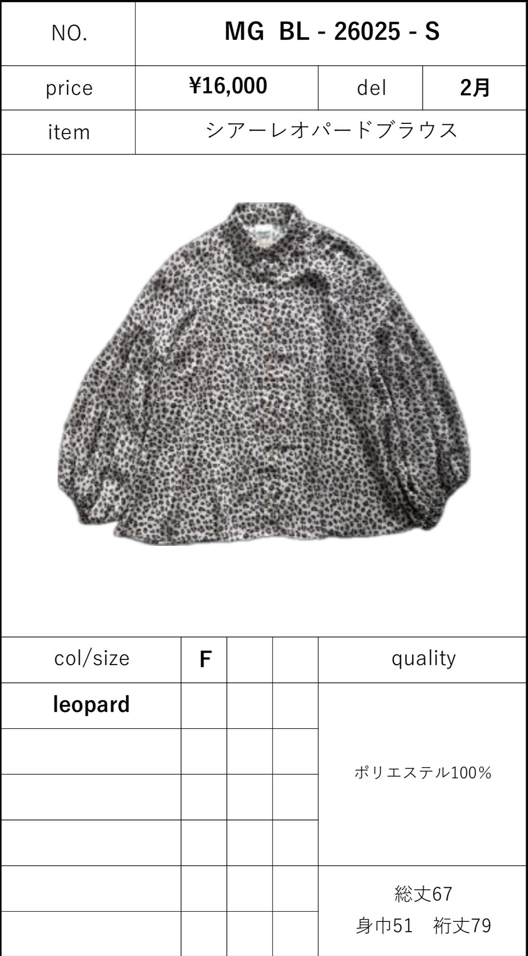 予約販売【 MARGAUX 】シアーレオパードブラウス (BL - 26025) 2月頃入荷