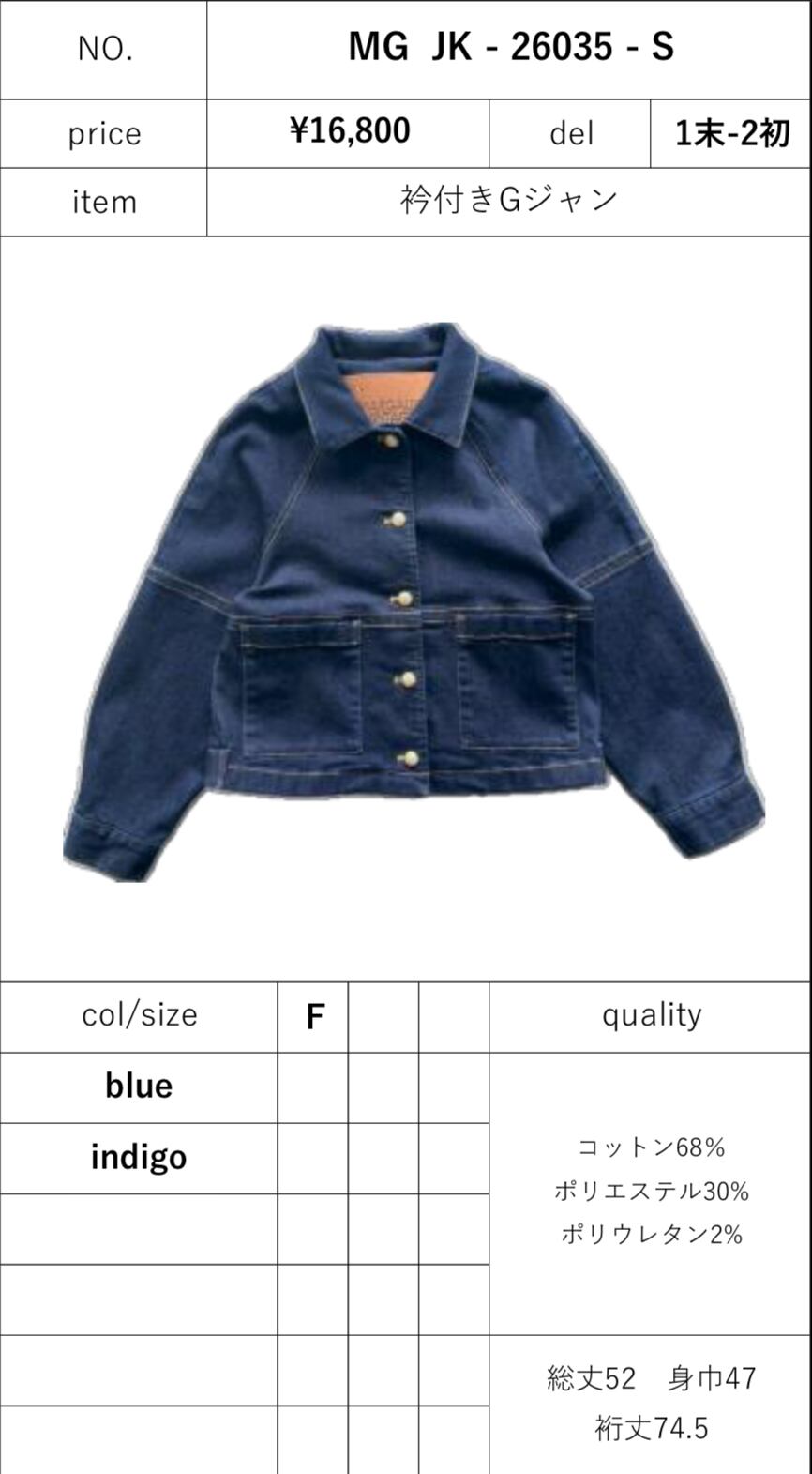 予約販売【 MARGAUX 】衿付きGジャン (JK - 26035) 2月上旬頃入荷