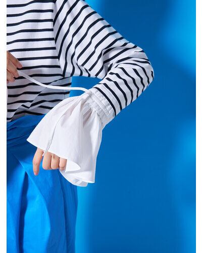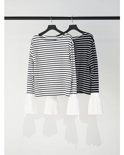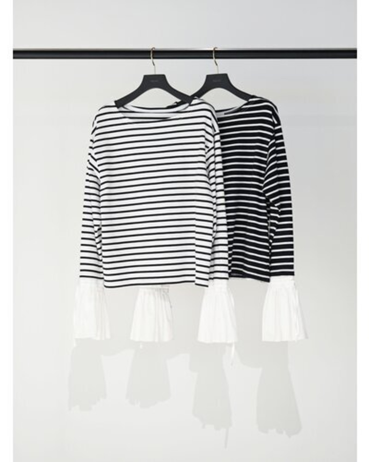 袖口は1mも長さのあるフレアを贅沢に入れて、カジュアルになりやすい春の定番ボーダーをアップデートしました。