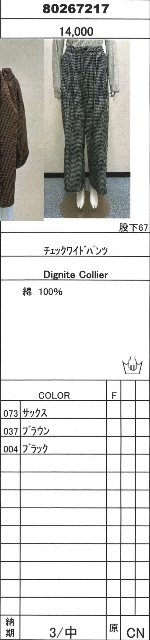 予約販売【 Dignite Collier 】チェックワイドパンツ (80267217) 3月下旬お届け