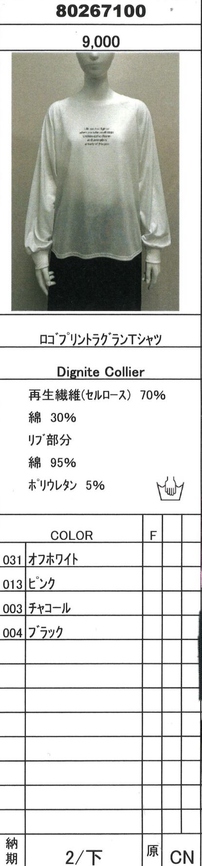 予約販売【 Dignite Collier 】ロゴプリントラグランTシャツ (80267100) 3月中旬お届け