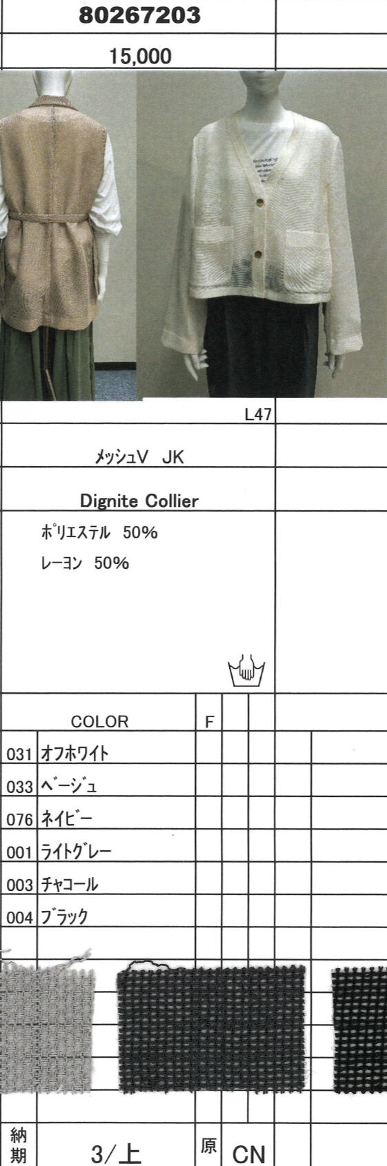 予約販売【 Dignite Collier 】メッシュV JK (80267203) 3月中旬お届け