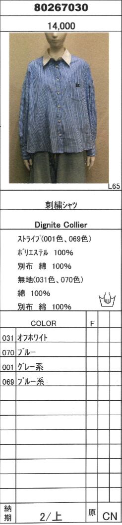 予約販売【 Dignite Collier 】刺繍シャツ(80267030) 2月中旬お届け