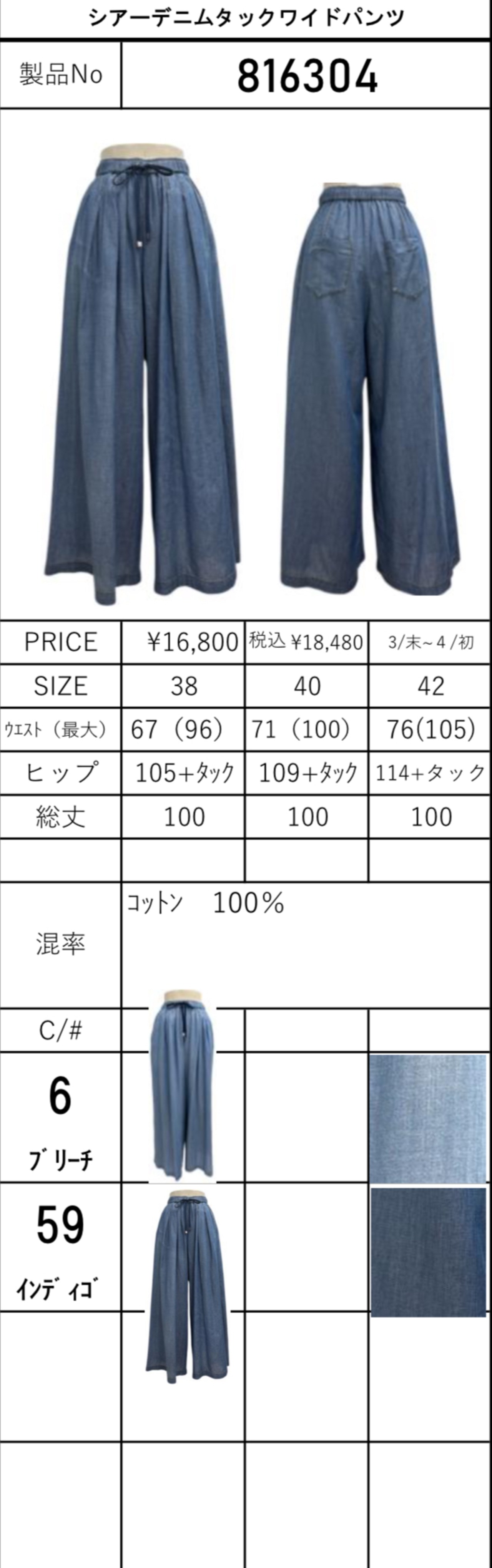 予約販売【 ayane 】シアーデニムタックワイドパンツ (816304) 4月上旬頃入荷お届け