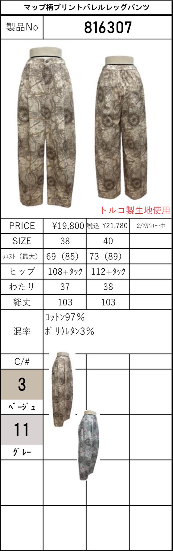 予約販売【 ayane 】マップ柄プリントバレルレッグパンツ (816307) 2月中旬頃入荷お届け