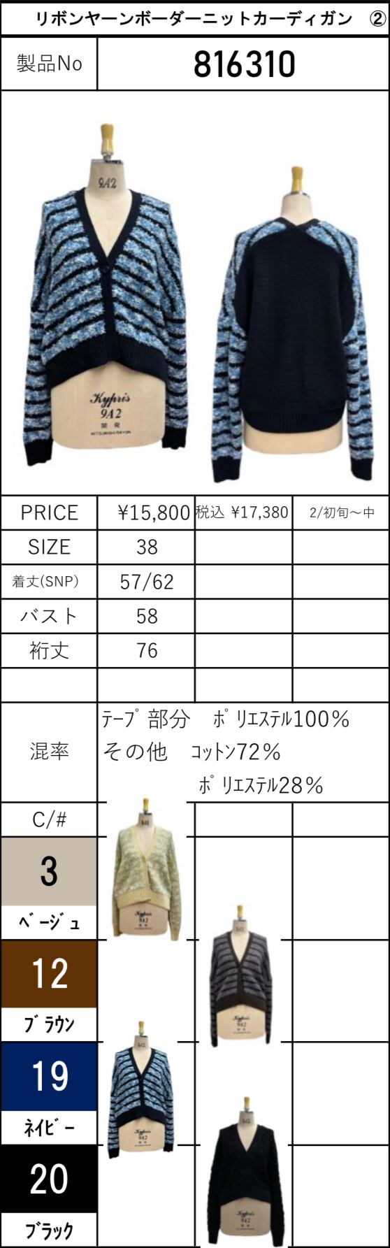 予約販売【 ayane 】リボンヤーンボーダーニットカーディガン (816310) 2月中旬頃入荷お届け