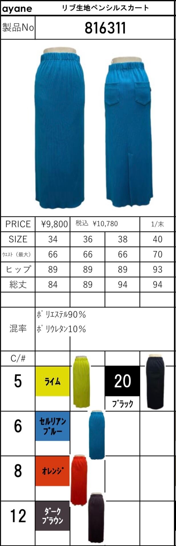 予約販売【 ayane 】リブ生地ペンシルスカート (816311) 1月下旬頃入荷お届け