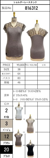 予約販売【 ayane 】ショルダーレースタンク (816312) 1月下旬頃入荷お届け