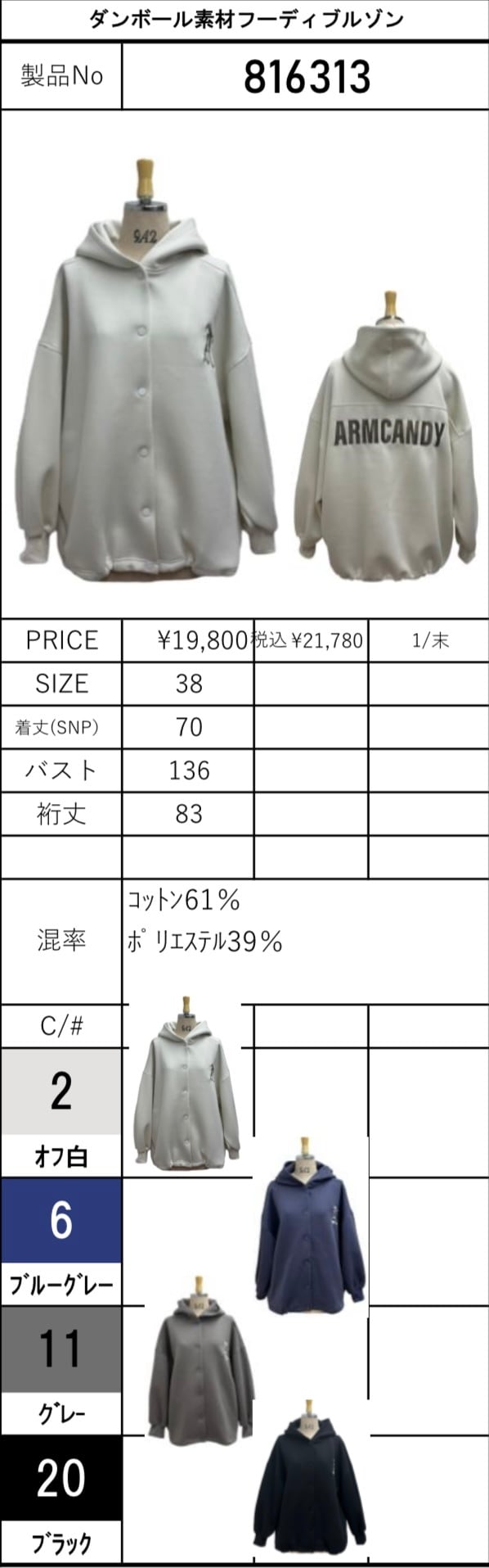 予約販売【 ayane 】ダンボール素材フーディブルゾン (816313) 1月下旬頃入荷お届け