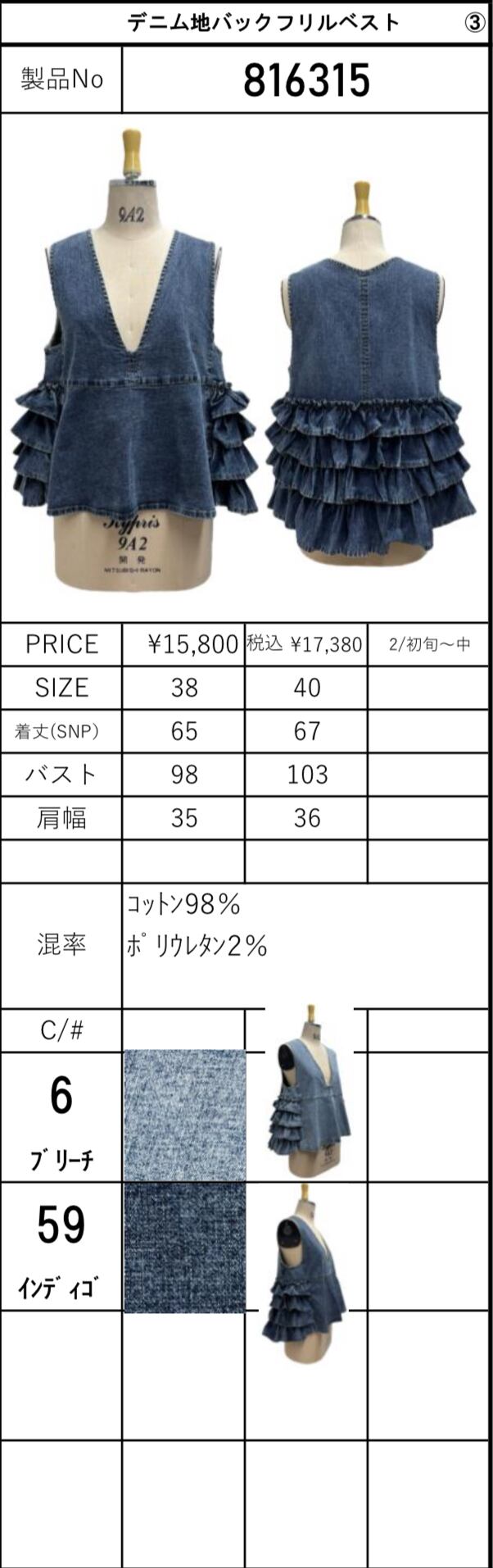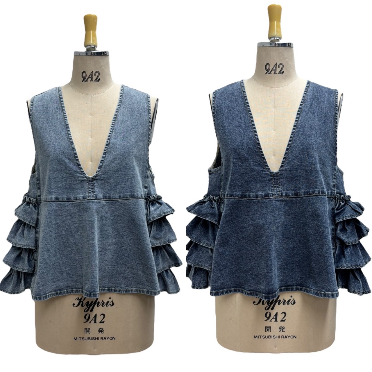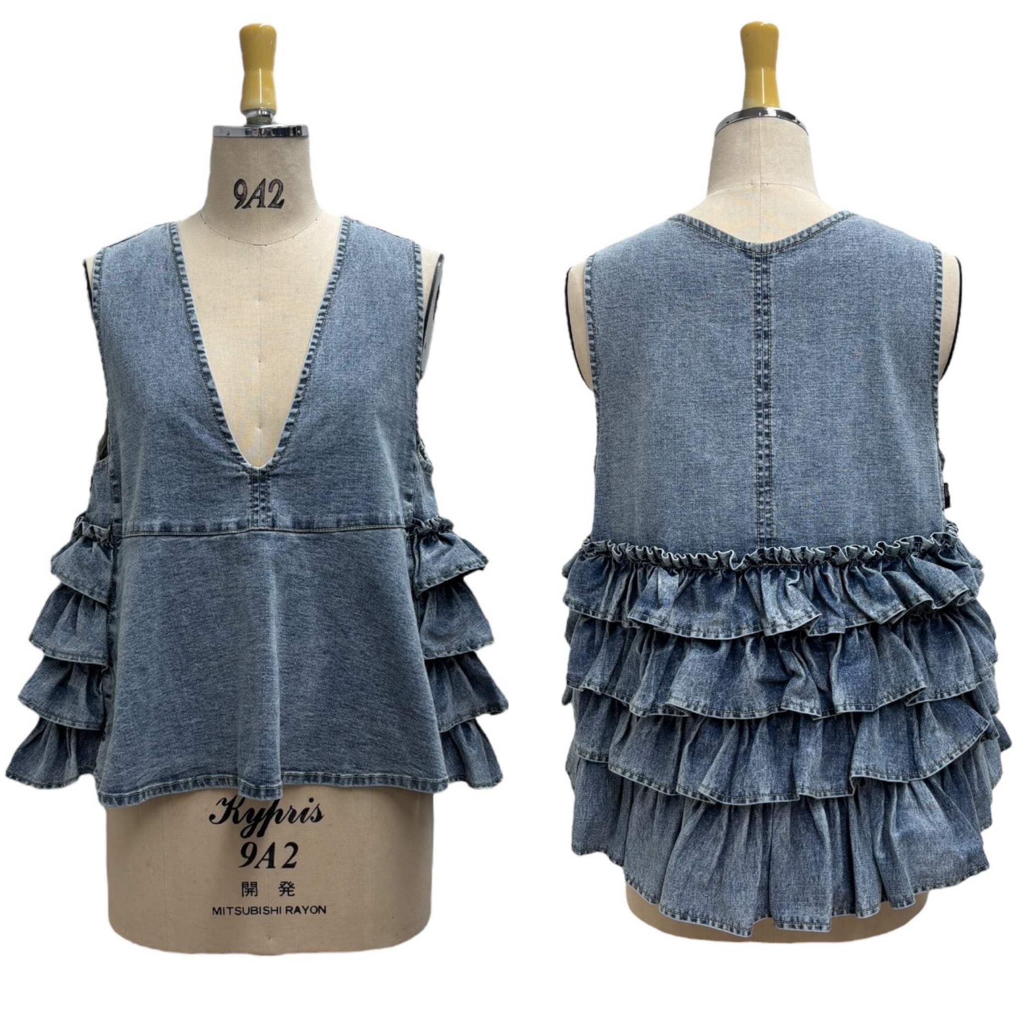 デニム地バックフリルベスト