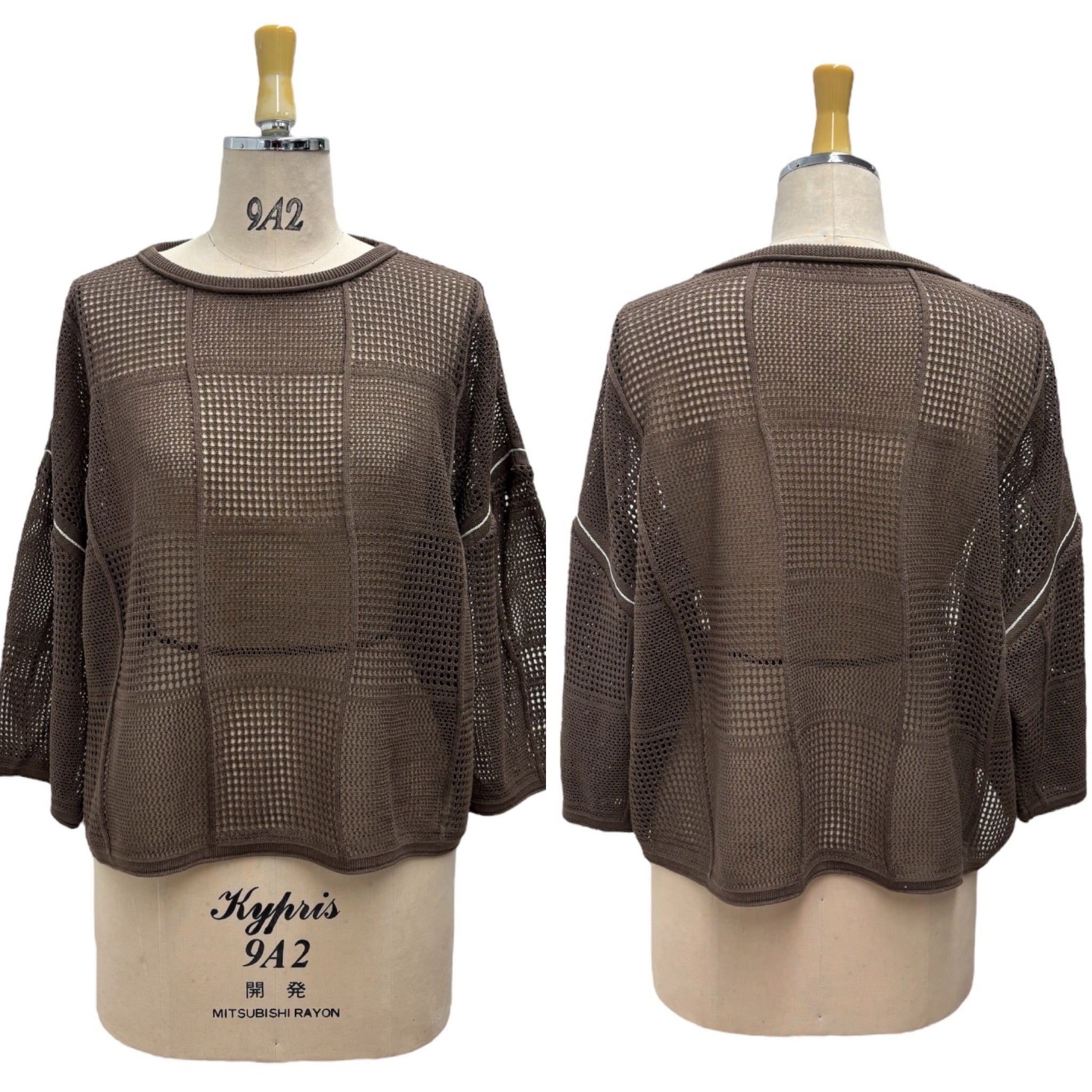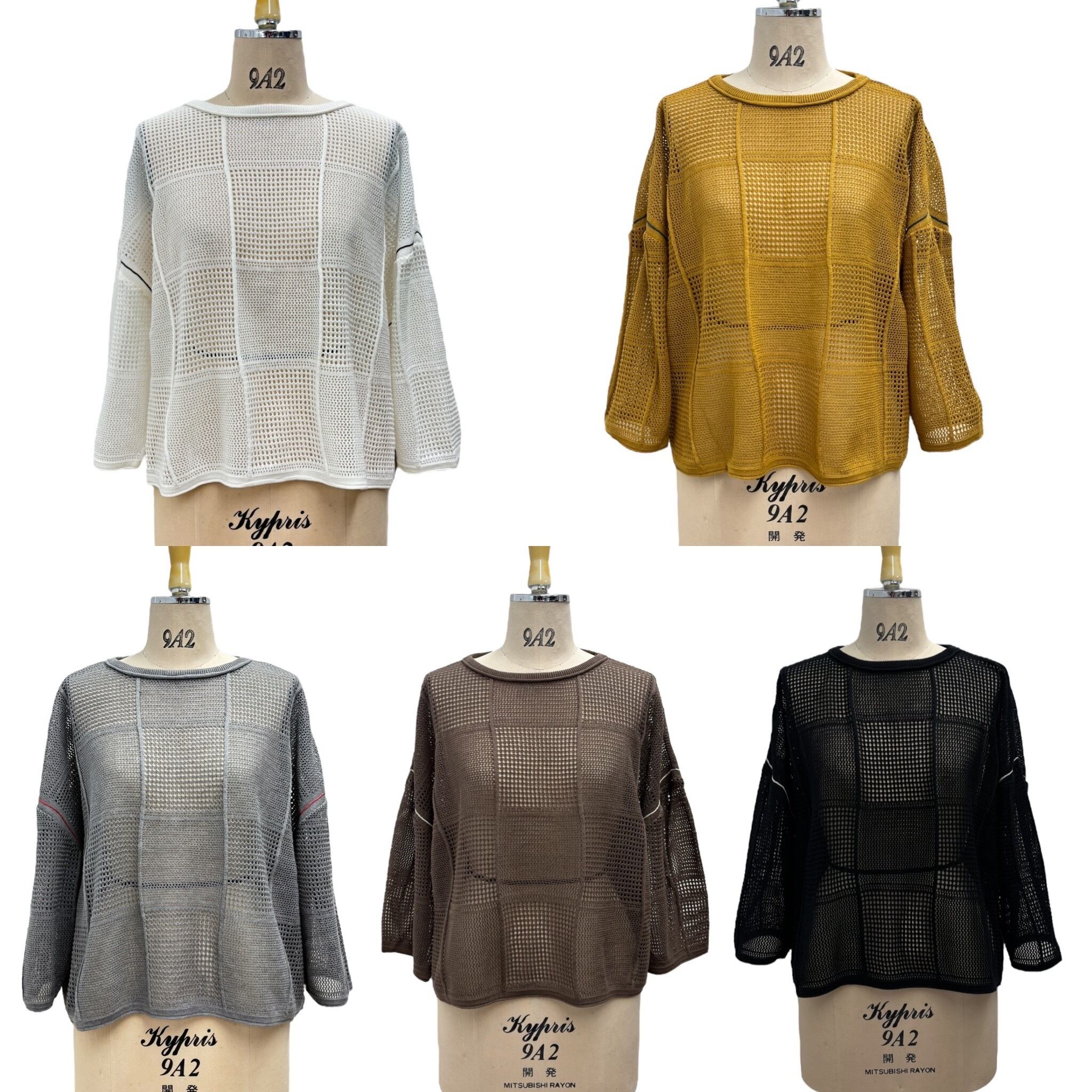 予約販売【 ayane 】格子柄メッシュ編ニット (816318) 3月下旬頃入荷お届け
