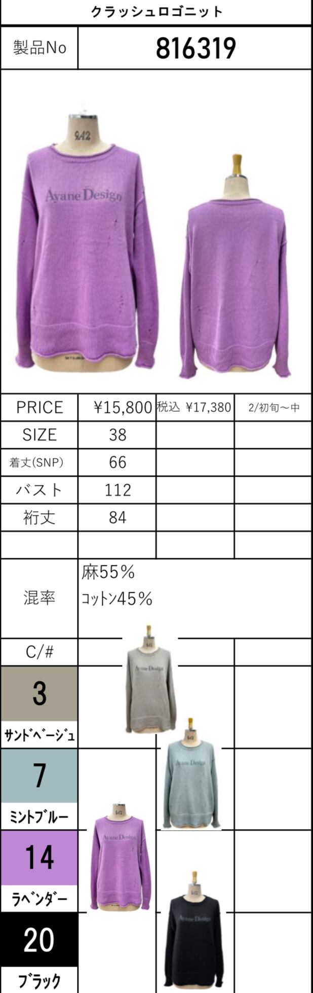予約販売【 ayane 】クラッシュロゴニット (816319) 2月中旬頃入荷お届け