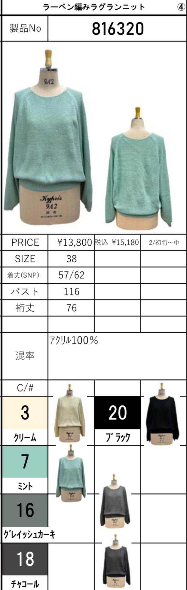 予約販売【 ayane 】ラーベン編みラグランニット (816320) 2月中旬頃入荷お届け
