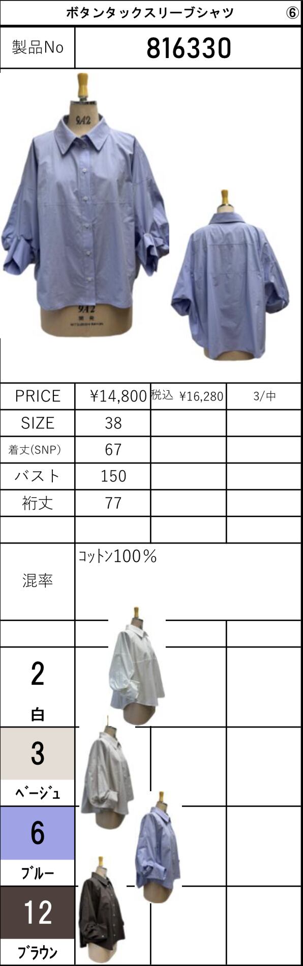 予約販売【 ayane 】ボタンタックスリーブシャツ (816330) 3月中旬頃入荷お届け