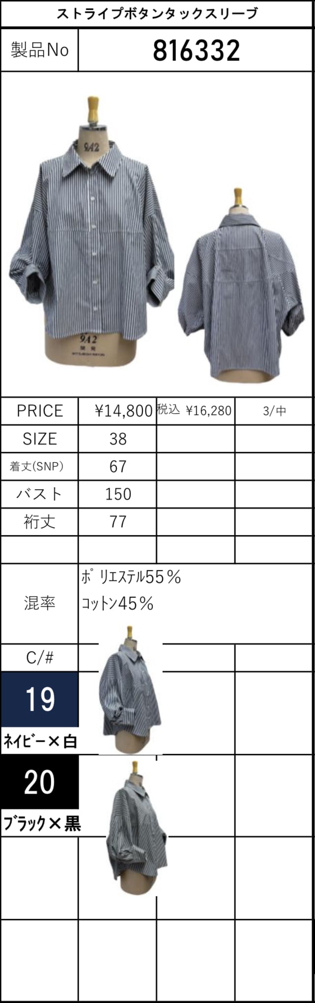 予約販売【 ayane 】ストライプボタンタックスリーブ (816332) 3月中旬頃入荷お届け