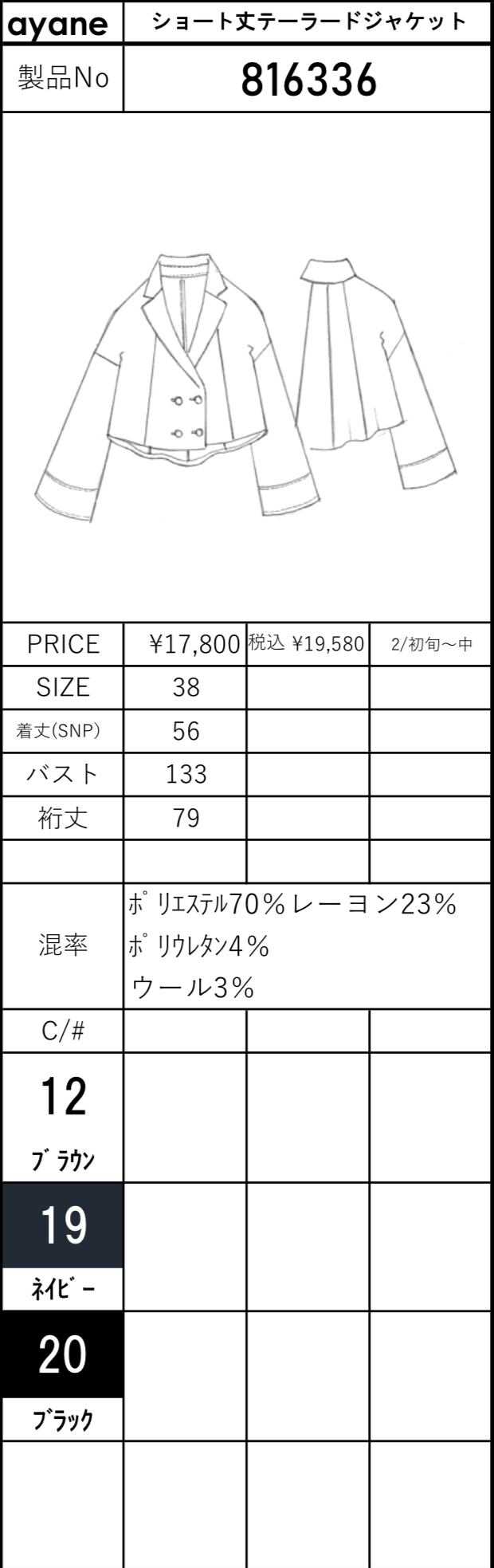 予約販売【 ayane 】ショート丈テーラードジャケット (816336) 2月中旬頃入荷お届け