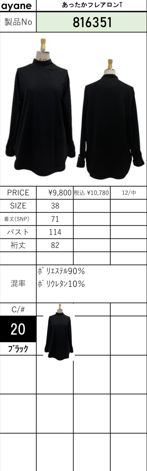 予約販売【 ayane 】あったかフレアロンT (816351) 12月中旬頃入荷お届け