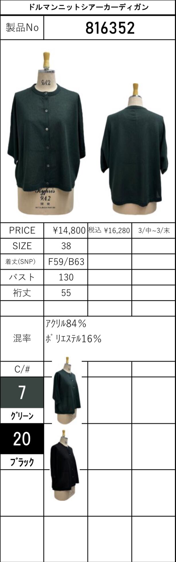 予約販売【 ayane 】ドルマンニットシアーカーディガン (816352) 3月下旬頃入荷お届け