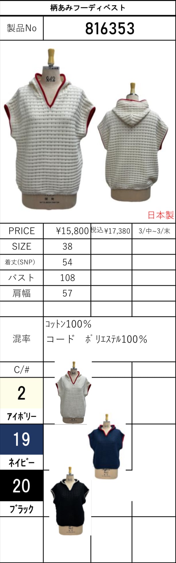 color No.2 アイボリー/No.19 ネイビー/No.20 ブラック