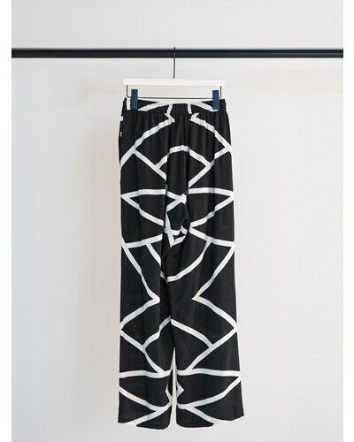 ゆったりとしたシルエットながらもすっきり見えるデザインに仕上げました。ウエストは総ゴム仕様で、ストレスのない穿き心地。
