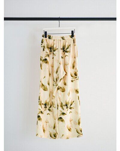 大胆なフラワー柄がスタイリングにアクセントを加え、シンプルなトップスと合わせるだけで印象的な着こなしに。
