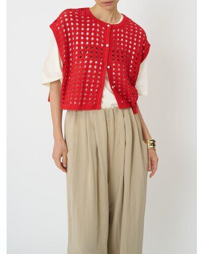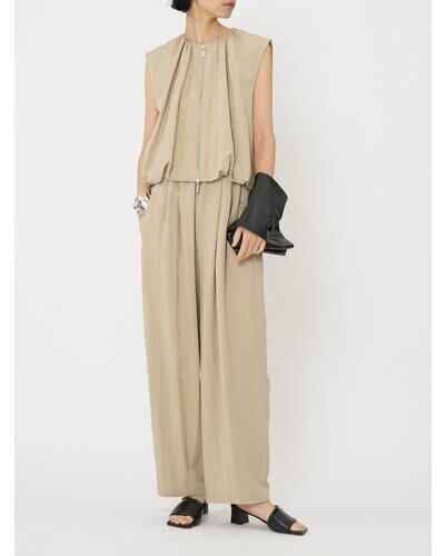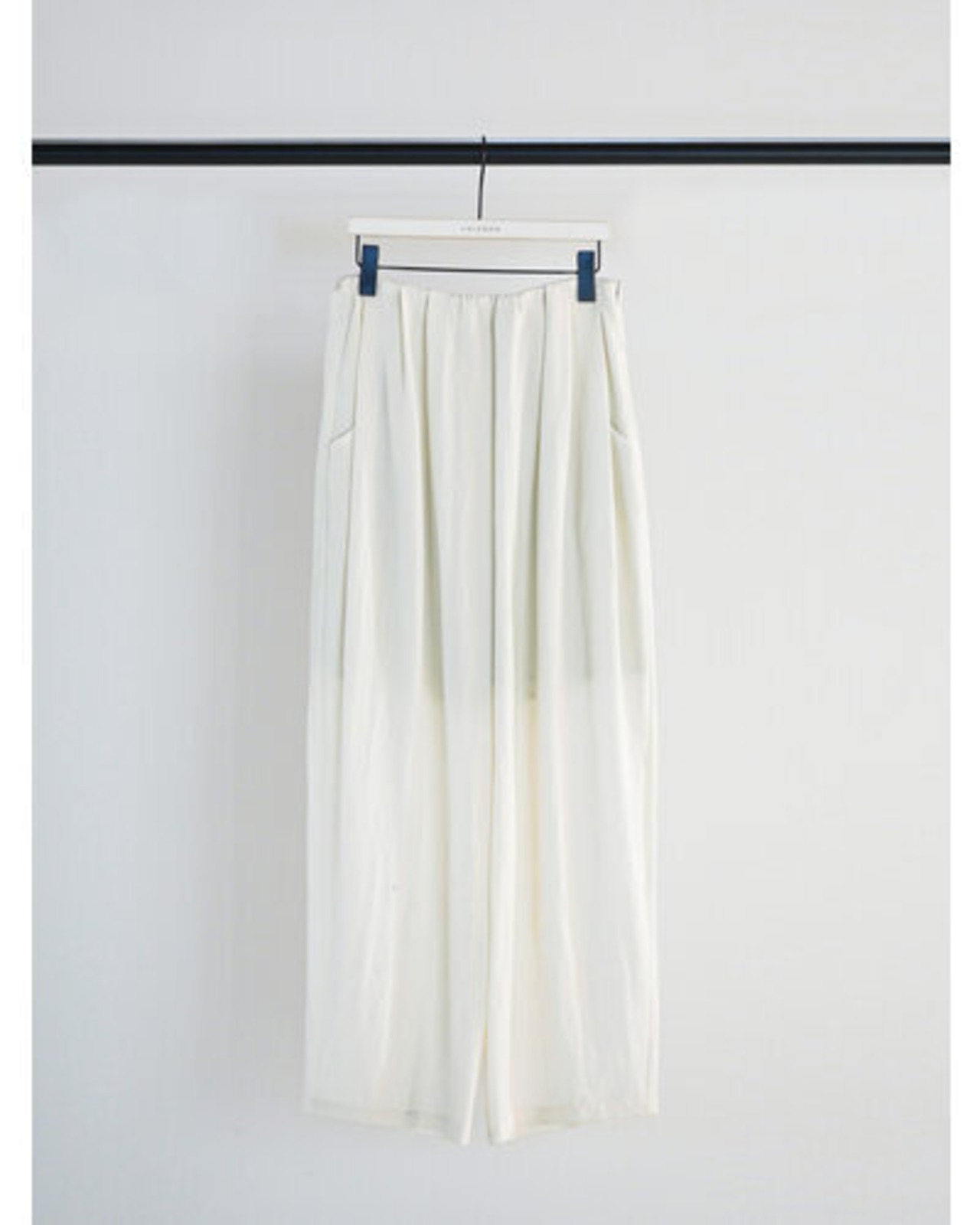 ゴムを内側に配し、ウェストをタックでまとめているので、カジュアル過ぎずきれいめに着こなせる1本。