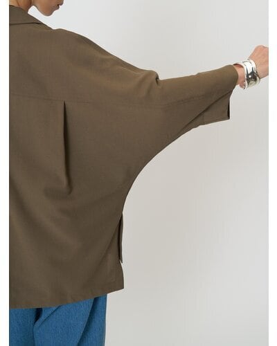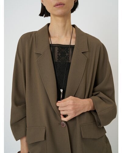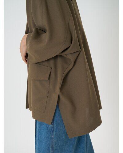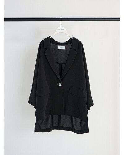麻混のメッシュ素材を使用した、ドルマンスリーブジャケット。