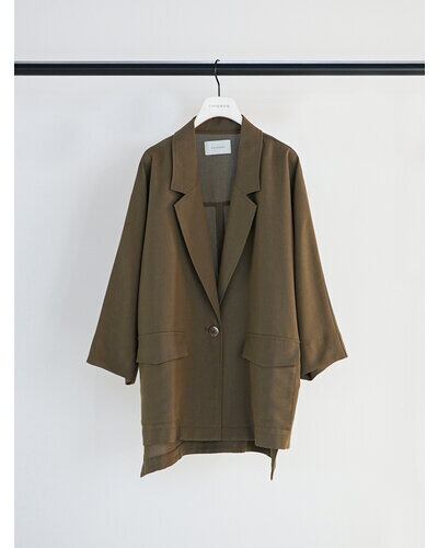 去年人気だったドルマンジャケットをシングルに変更して、衿の刻み位置や衿のサイズを変えて、今年らしくブラッシュアップさせた夏まで使えるお勧めのジャケットです!