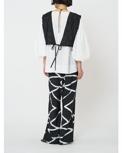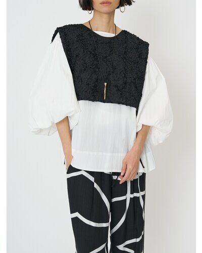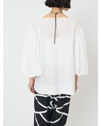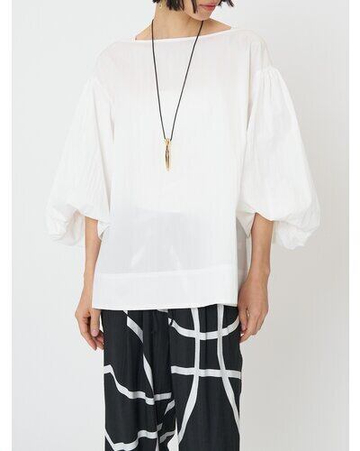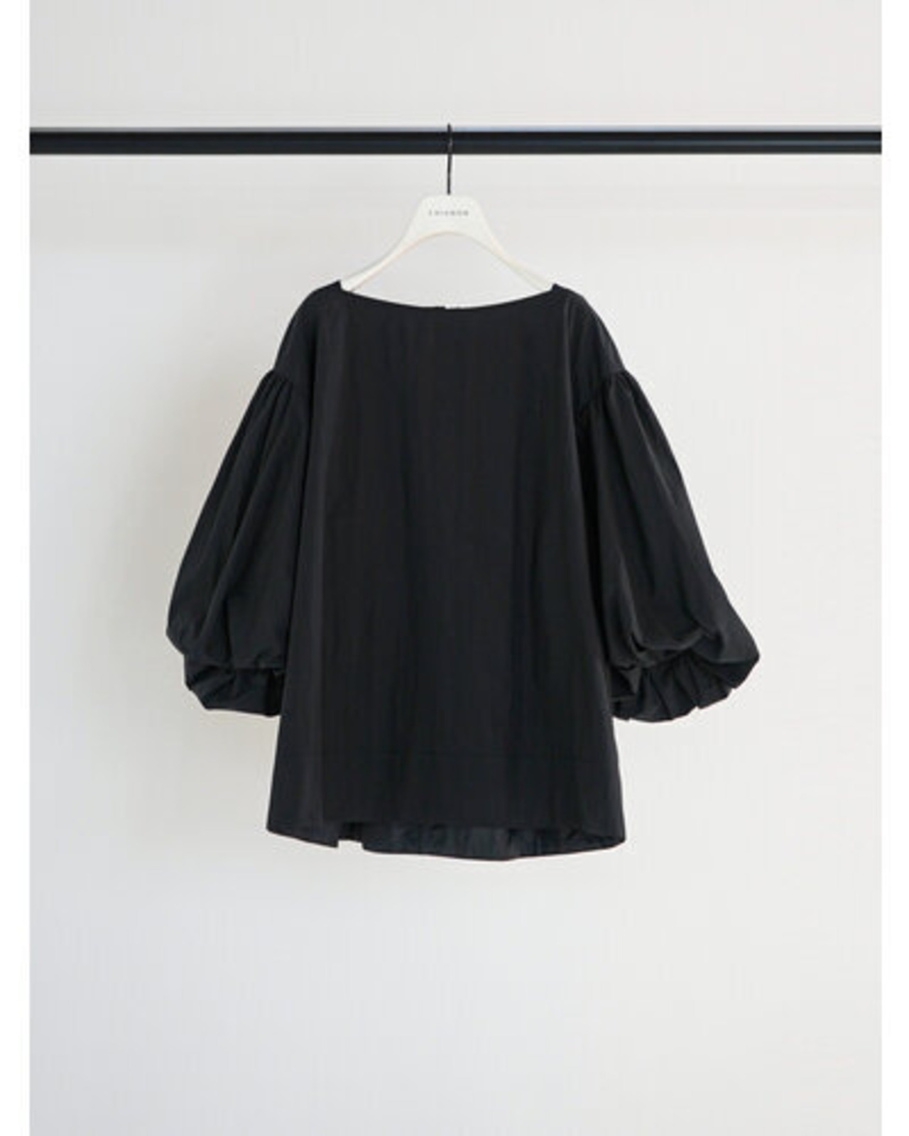 潔いスラッシュドネックと、ボリュームたっぷりのバルーンスリーブとのコントラストがキャッチーな、1枚で映えるプルオーバーです。