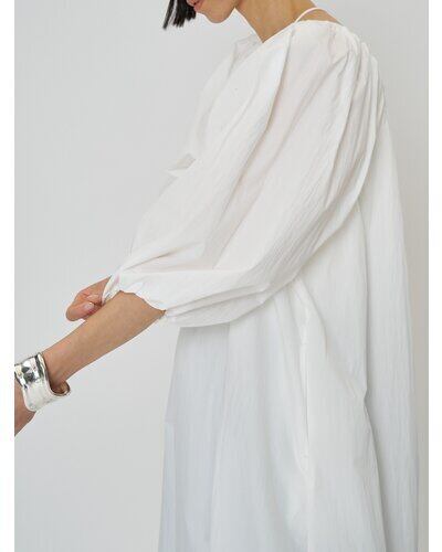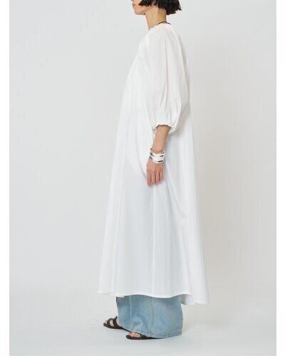 広く開いた衿ぐりがデコルテをすっきりと見せてくれる、リラクシーな大人ワンピース。