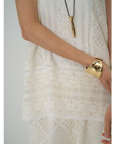 表情の異なる2種類のレースとテープレースを贅沢に組み合わせた、パッチワークデザインのキャミソールです。