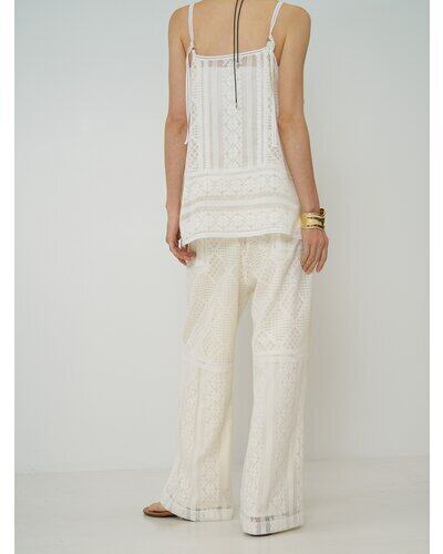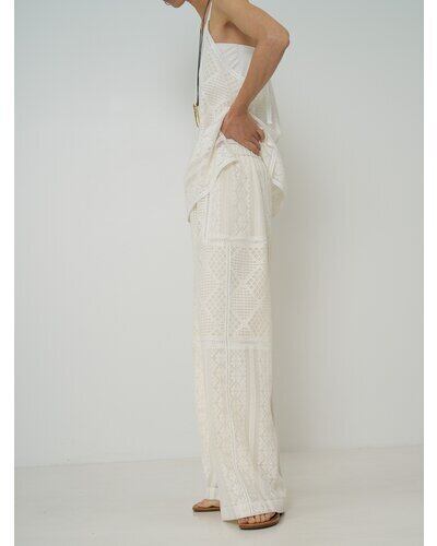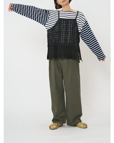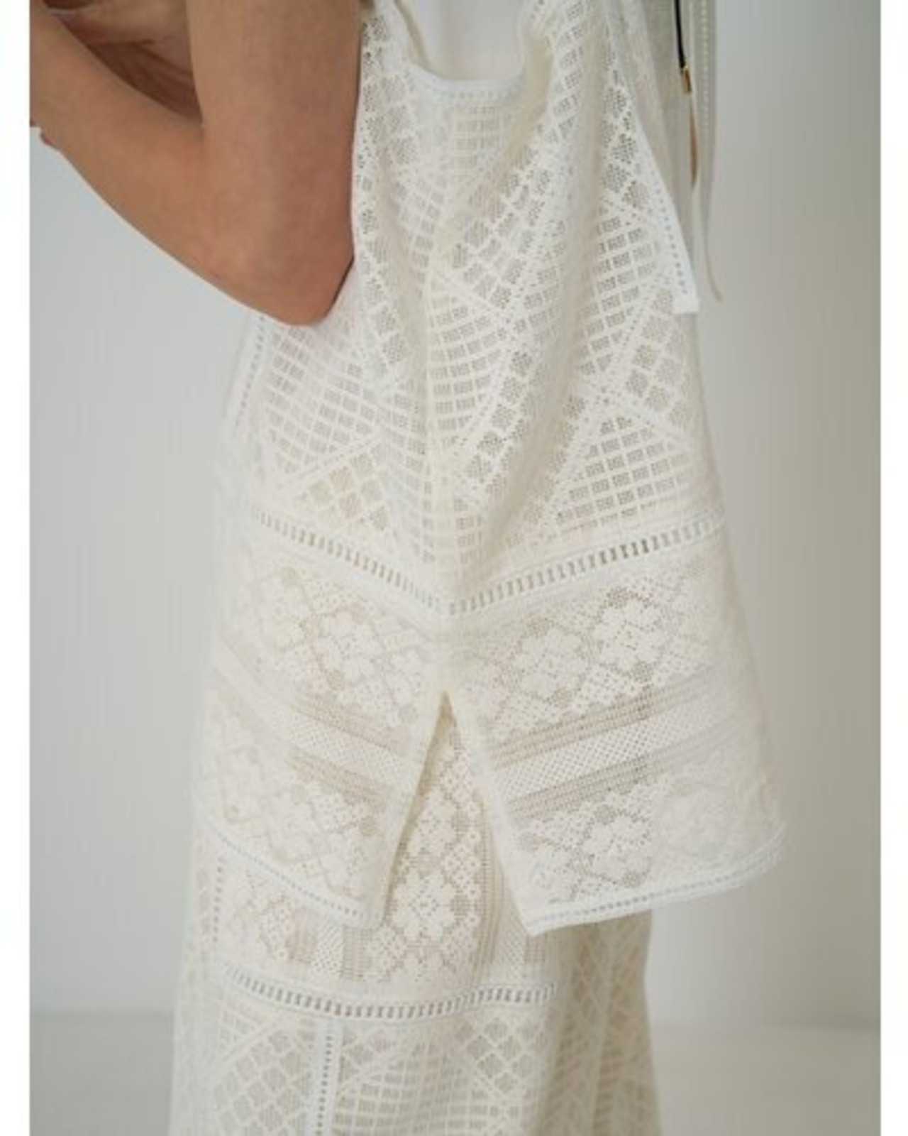 今季のトレンドであるデニムやヴィンテージスタイルに欠かせないレースアイテムを、綿混のナチュラルカジュアルな素材感で表現。エレガントになりすぎず、普段使いしやすい仕上がりです。